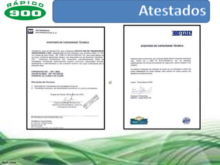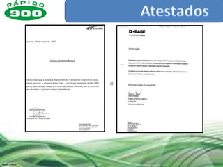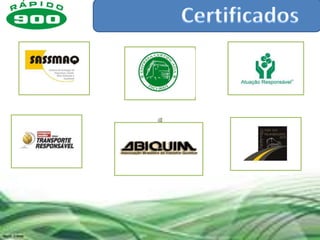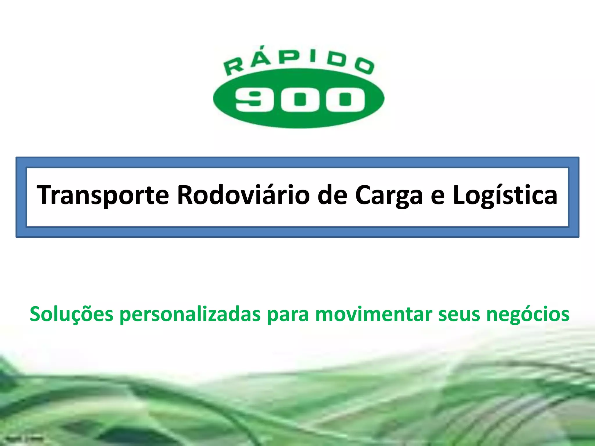 A Rápido 900 é uma empresa de transporte rodoviário de carga e logística com mais de 50 anos de experiência. Ela possui uma frota de mais de 1.000 veículos, 22 filiais pelo Brasil, e atende 330 clientes ativos principalmente nos setores de produtos químicos, alimentos e higiene. A empresa investe em tecnologia de rastreamento e gestão de transportes para fornecer serviços customizados e de qualidade.