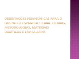 O documento discute abordagens para o ensino de espanhol, enfatizando que os erros devem ser vistos como oportunidades de aprendizagem, a avaliação deve ser formativa e contínua, e o foco deve ser no desenvolvimento de competências interculturais e comunicativas dos estudantes.