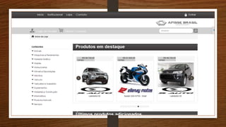 O documento descreve como vender produtos no e-commerce da Apisse Brasil. Para vender produtos é necessário se tornar um licenciado, que recebe 25% de comissão sobre o lucro das vendas diretas. É possível aumentar ganhos recrutando uma equipe de vendas ou comprando um site de e-commerce, que gera mais comissões. O documento também explica como funcionam as vendas parceladas de veículos e como os compradores podem retirar os produtos após pagar parte do valor.