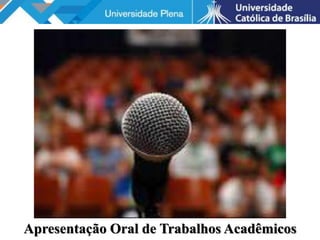 O documento fornece orientações sobre como fazer uma apresentação oral acadêmica de forma efetiva, abordando tópicos como glossofobia, etapas da apresentação, dicas para a preparação, metodologia e como preparar os slides.