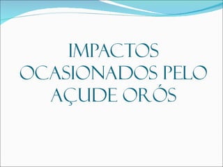 O documento descreve a barragem do Açude Orós no Ceará, construída pelo presidente Juscelino Kubitschek para reter as águas do Rio Jaguaribe. Em 1960, fortes chuvas causaram o transbordamento do rio e o arrombamento parcial da barragem ainda em construção, inundando várias cidades e desabrigando mais de 300 mil pessoas. O documento fornece detalhes técnicos sobre a construção da barragem.