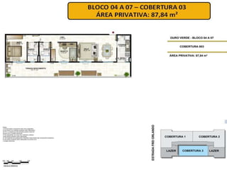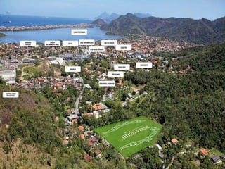 O documento descreve um condomínio fechado com apartamentos de 2 e 3 quartos perto de praias em Piratininga, Niterói. O local oferece tranquilidade cercado por natureza e espaços para reunir amigos e família, além de atividades físicas e de lazer para crianças. Informa também o valor, entrada e contato do corretor responsável pela venda.