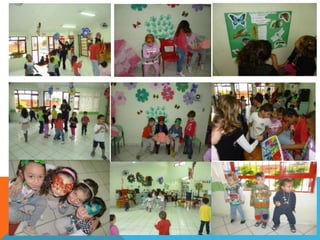 O documento descreve um projeto realizado em uma creche que teve como objetivo registrar brincadeiras das crianças utilizando mídias como fotos e vídeos. O projeto incluiu eventos como um show de talentos e um baile da primavera, nos quais as crianças puderam se apresentar e interagir. O resumo avalia que o projeto atingiu seus objetivos de explorar as mídias de forma lúdica e significativa para as crianças.