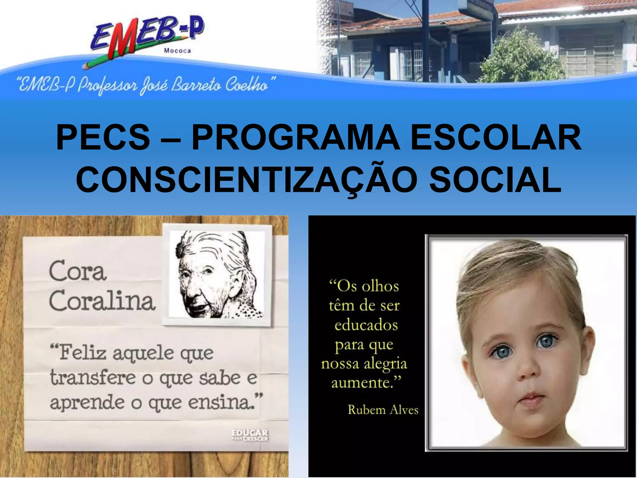O documento lista projetos de um programa escolar de conscientização social, incluindo xadrez, bullying, um mundo melhor, mídia e ética, sustentabilidade, cuidados com a vida, qualidade de vida, educação financeira e não sujar, coordenado por Maria Ignez Soares Montanini e orientado por Sandra Capel Soares Pasqua.