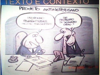 Este documento discute a importância do contexto para a compreensão de textos. Explica que o contexto engloba elementos sociais, culturais e históricos que ajudam na interpretação do que está implícito no texto. Também destaca que o conhecimento prévio do leitor sobre esses aspectos contextuais facilita a compreensão da mensagem.