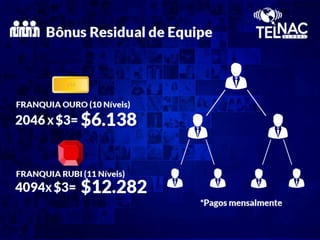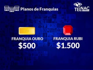 A Telnac Global é uma rede de franquias que vende produtos naturais e serviços de telefonia VOIP. A franquia permite expandir a distribuição dos produtos e serviços com menor risco. Os franqueados podem ganhar fixamente por dia e bônus por indicações e equipes.
