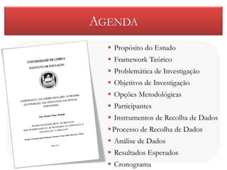 Este documento apresenta um pré-projeto de tese de doutoramento sobre a importância dos líderes escolares no processo de integração de tecnologias nas escolas portuguesas. O estudo irá analisar o papel dos diretores escolares nesta integração através de questionários a diretores e professores. Espera-se que os resultados identifiquem como a liderança escolar pode facilitar a adoção de tecnologias e informe futuras iniciativas de formação de líderes.