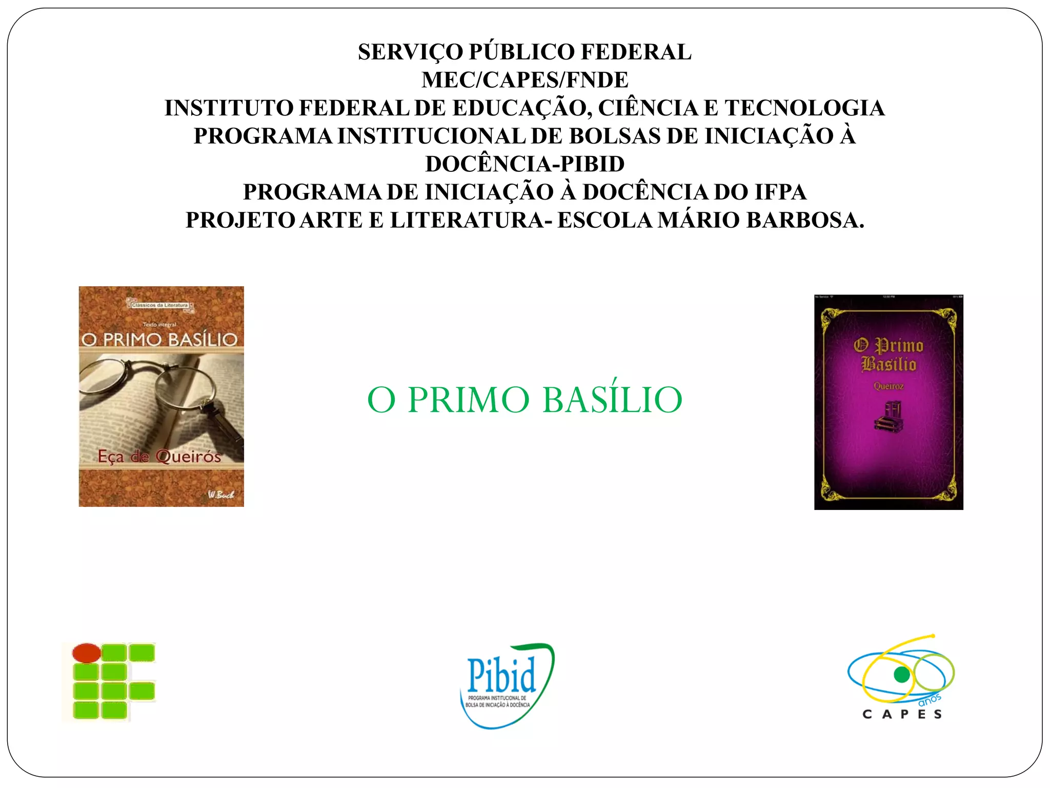 O documento apresenta informações sobre o escritor português Eça de Queirós e seu romance realista O Primo Basílio. Detalha sua biografia, características do Realismo Português, personagens e temas centrais da obra, como o adultério. Ainda inclui três questões sobre detalhes do enredo e da crítica social presente na caracterização dos personagens.