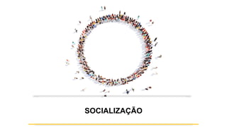 A socialização é o processo pelo qual os indivíduos aprendem e interiorizam as normas e valores de sua cultura para se integrarem à sociedade. A socialização primária ocorre principalmente na família e transmite os elementos culturais básicos, enquanto a socialização secundária acontece por meio da escola e dos meios de comunicação para uma integração social mais ampla. A socialização é um processo contínuo ao longo da vida mediado por diversos agentes.