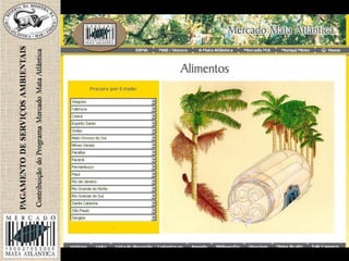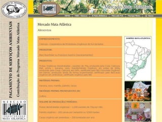 O 1º Seminário Paulista de Pagamento por Serviços Ambientais discute a importância dos serviços ambientais da Mata Atlântica e como o pagamento pode ser estruturado nessas áreas. O programa Mercado Mata Atlântica visa promover a sustentabilidade através do incentivo à prática de negócios e produtos que respeitem o meio ambiente, focando na inclusão socioeconômica de pequenos produtores. O documento destaca a relação entre políticas públicas e mercadorias sustentáveis, enfatizando a necessidade de reconhecimento e valorização dos serviços ecológicos.