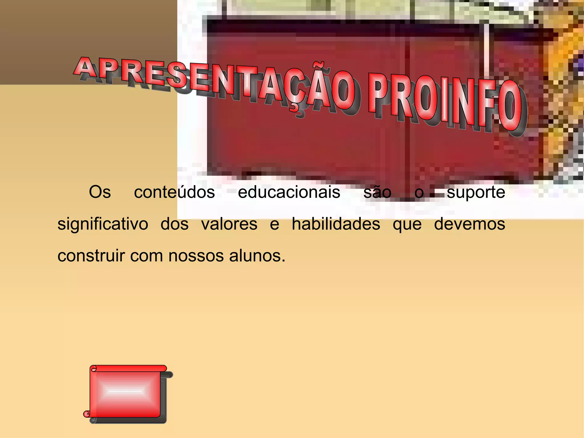 APRESENTAÇÃO PROINFO Osconteúdos educacionais são o suporte significativo dos valores e habilidades que devemos construir com nossos alunos.