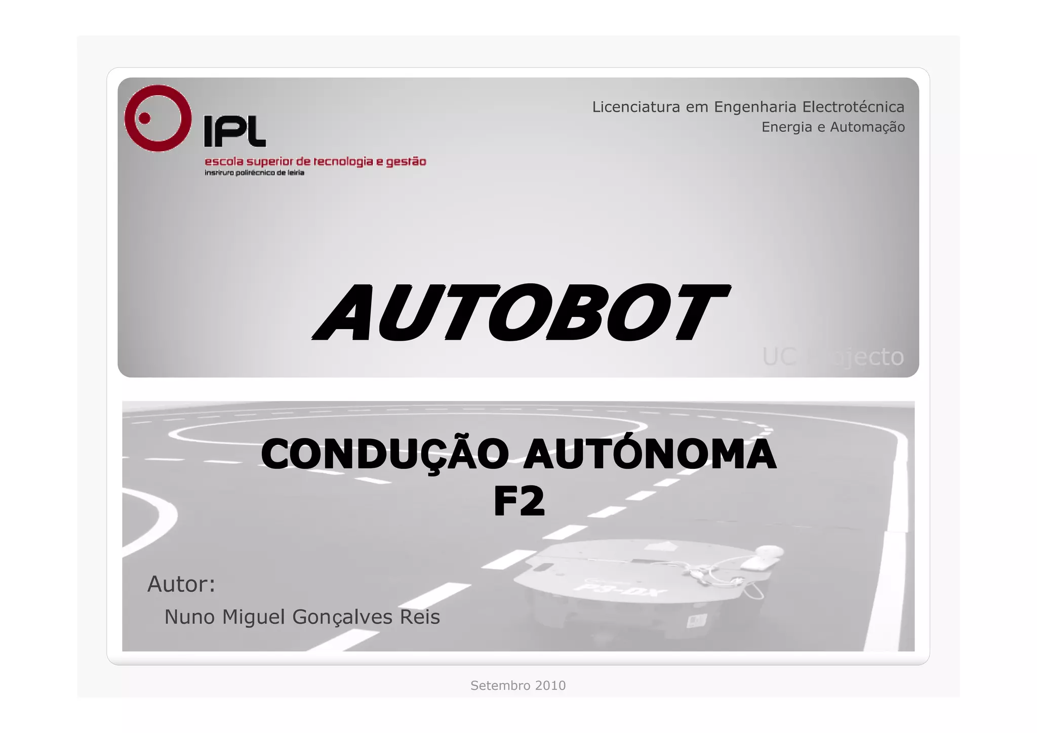 Este documento resume um projeto sobre condução autônoma de um robô usando visão computacional. O projeto envolveu a calibração de uma câmara, desenvolvimento de algoritmos para detecção de vias em imagens e controle do robô para navegação autônoma. Dois métodos foram desenvolvidos: um para identificar duas vias e outro para identificar uma via única. Ambos os métodos usaram processamento de imagem para segmentar as vias e guiar o movimento do robô. Testes demonstraram que o método de duas vias foi mais