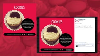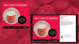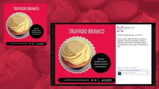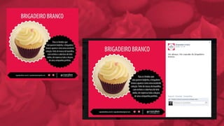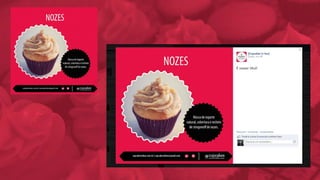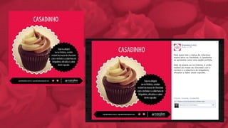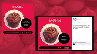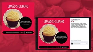 O documento analisa o mercado de cupcakes no Brasil e em Blumenau, identificando oportunidades e ameaças para o negócio. Ele propõe uma reformulação da marca, com novo logotipo e identidade visual, além de uma estratégia de comunicação digital e mídia exterior para divulgar a abertura de uma nova loja.