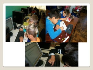 Este documento descreve um projeto para ensinar 12 alunos com dificuldades de aprendizagem usando tecnologias de informação e comunicação. O projeto visa despertar o interesse dos alunos na aprendizagem, compreender a importância do computador no mundo moderno e estimular o uso de sites educativos. As atividades ocorrerão duas horas por semana usando ferramentas como jogos educativos, vídeos e sites para melhorar a alfabetização dos alunos.