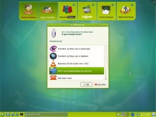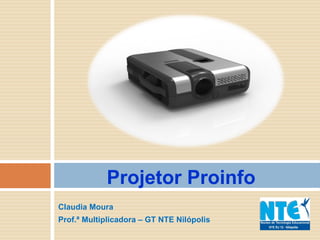 O documento fornece instruções sobre como preparar, configurar e operar o Projetor Proinfo, incluindo como ligá-lo e desligá-lo corretamente, ajustar a imagem, conectar mídias e dispositivos externos e a uma rede sem fio ou com fio.
