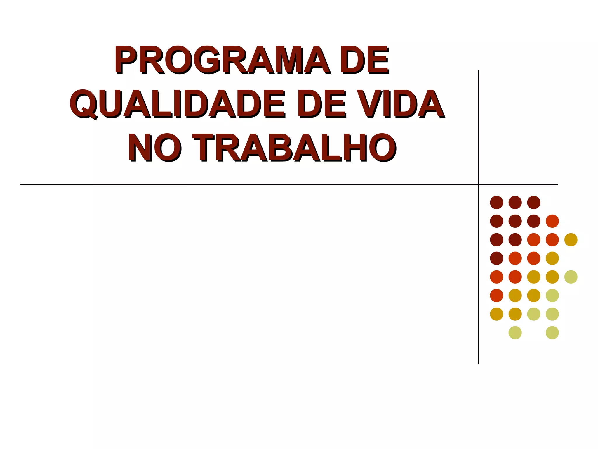 O documento descreve um programa de qualidade de vida no trabalho implementado em uma empresa com quatro centros de distribuição e duas lojas de varejo. O programa foi desenvolvido após uma pesquisa identificar a necessidade de melhorar o convívio social e lazer dos funcionários. Ele inclui novas áreas de descanso e integração, além de treinamentos e iniciativas de saúde.