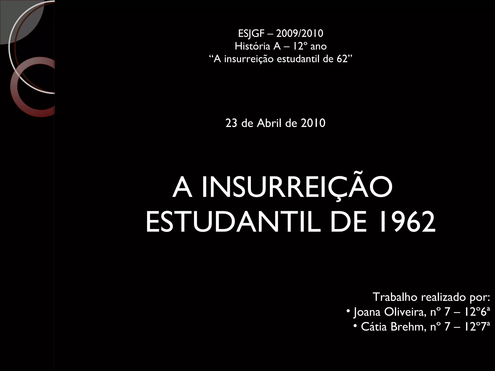 Em março de 1962, os estudantes portugueses protestaram contra a proibição do Dia do Estudante e entraram em luto académico. Em abril, fizeram greve contra o ministro da Educação. Em maio, ocuparam a Associação Académica de Coimbra e a Cidade Universitária de Lisboa, sendo depois alvo de assalto policial. Em novembro, concentraram-se insurreccionalmente no Instituto Superior Técnico. Estes protestos estudantis marcaram o início do descontentamento popular com