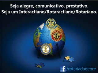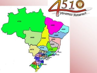 O documento resume o que é o Rotaract, uma organização internacional para jovens entre 18 e 30 anos que promove serviços comunitários. O Rotaract é patrocinado pelo Rotary Club local e tem mais de 142 mil membros em todo o mundo, sendo o Brasil o segundo país com mais membros. Os clubes do Rotaract organizam projetos de desenvolvimento profissional, liderança e prestação de serviços.