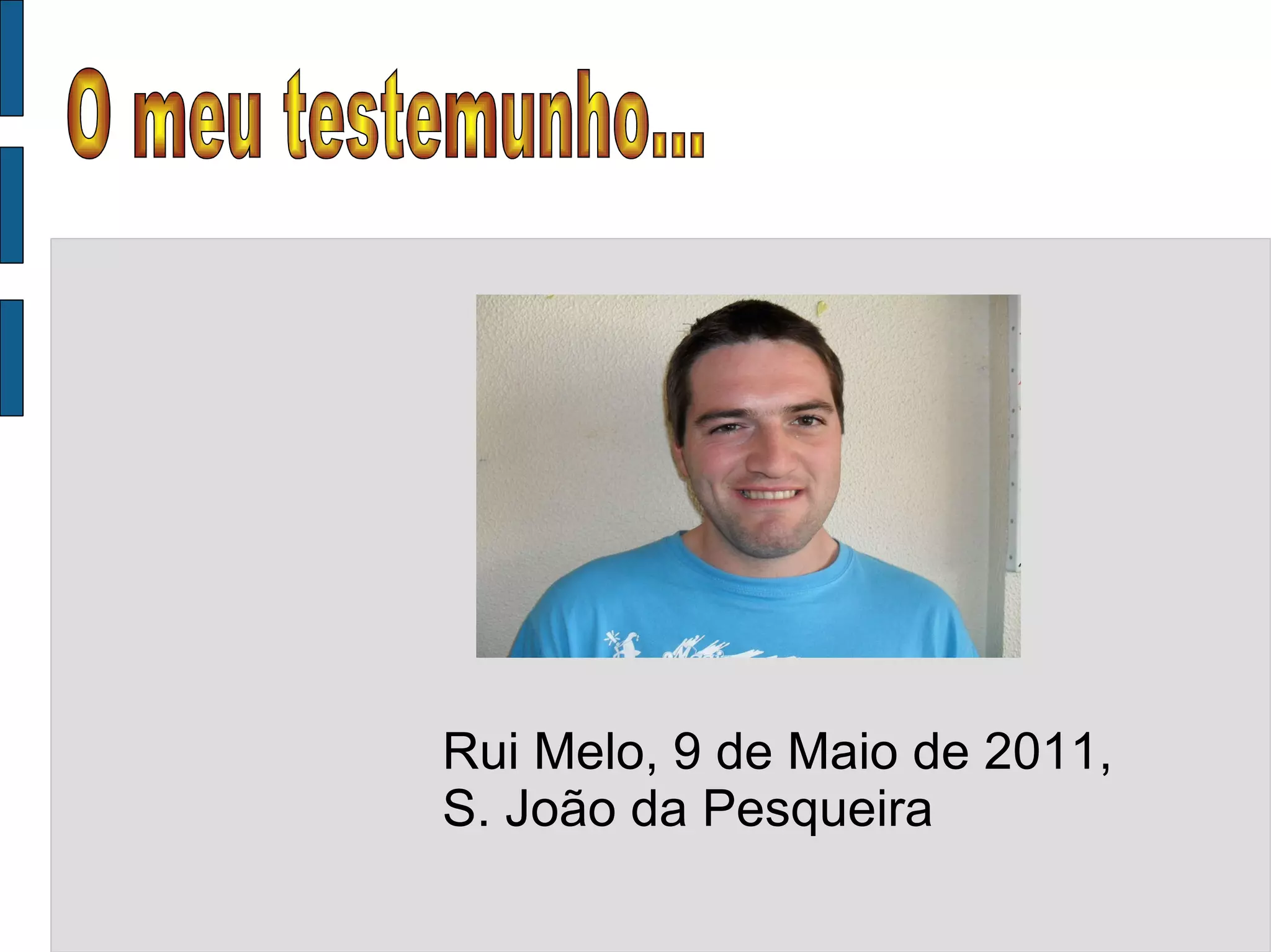 Rui Melo conta sua história de vida com paralisia cerebral. Apesar das dificuldades, ele lutou para ter uma vida ativa, frequentando a escola, fazendo estágios de trabalho e agora um curso profissionalizante. Embora ainda enfrente preconceitos e medos em relação aos relacionamentos, ele aceita melhor quem é e espera servir de inspiração para outras pessoas com deficiências.