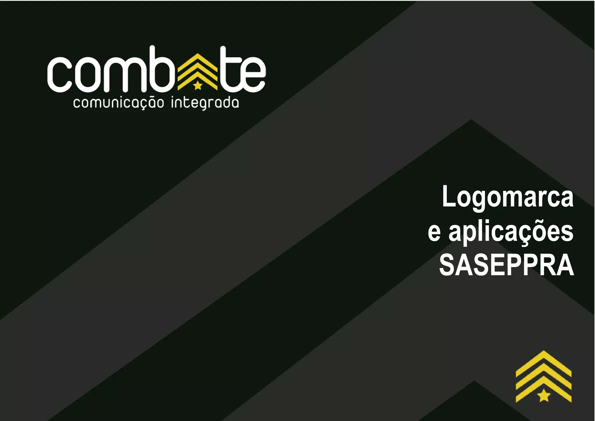 O documento apresenta a logomarca do Sindicato das Associações e Empresas de Proteção Patrimonial e Rastreamento (SASEPPRA) e exemplos de sua aplicação em cartões de visita e papel de carta.