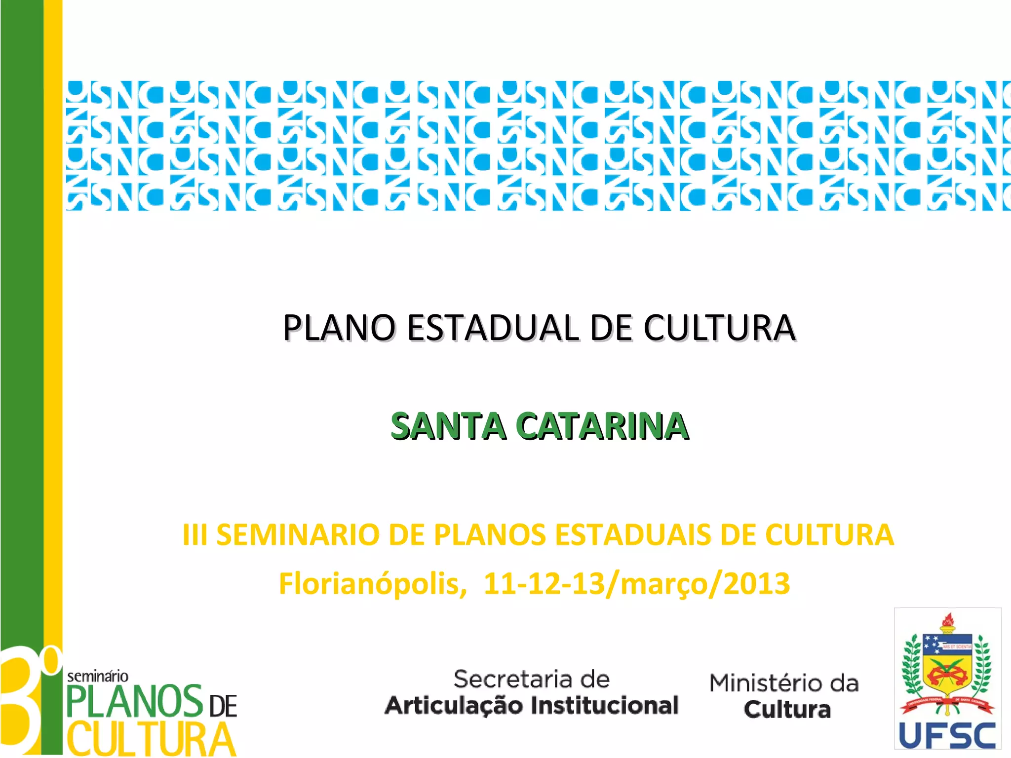 Este documento apresenta o Plano Estadual de Cultura de Santa Catarina, que define diretrizes, desafios, oportunidades, objetivos, estratégias e ações para o setor cultural no estado. O plano foi elaborado por meio de ampla participação social em 10 fóruns territoriais e tem como objetivo principal implementar políticas públicas culturais de forma descentralizada e democrática.