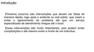 Primeiros socorros são intervenções rápidas para evitar agravamento até atendimento especializado. Emergências requerem atendimento rápido por equipe médica para suporte de vida. Urgências precisam ser resolvidas rapidamente, sem risco iminente de morte. Auxiliar veterinário deve facilitar atuação do veterinário e não executar procedimentos complexos sozinho.