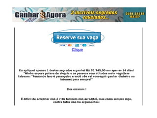 O documento convida o leitor a clicar em um link para alcançar o sucesso agora. Promete que o sucesso do leitor também trará sucesso para outra parte.