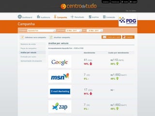O documento discute a importância da propaganda online, destacando que a mídia que mais funciona para vender produtos offline é a online, com 50% das compras influenciadas por publicidade na internet. Também ressalta três diferenciais essenciais de fazer propaganda online: trabalho, trabalho e trabalho.