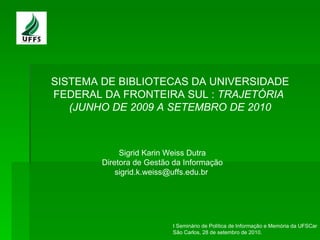 1. O documento descreve a trajetória da Universidade Federal da Fronteira Sul (UFFS) desde sua criação em junho de 2009 até setembro de 2010, incluindo a instalação de sua reitoria em Chapecó e a apresentação da universidade à comunidade local.