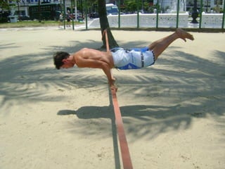 A slackline é uma atividade física que envolve equilibrar-se em uma fita esticada entre dois pontos fixos a cerca de 30cm do chão, exigindo concentração total. Surgiu na escalada nos anos 1980 e pode ser praticada em diversos locais ao ar livre. Oferece benefícios como melhoria do equilíbrio, coordenação e propriocepção.