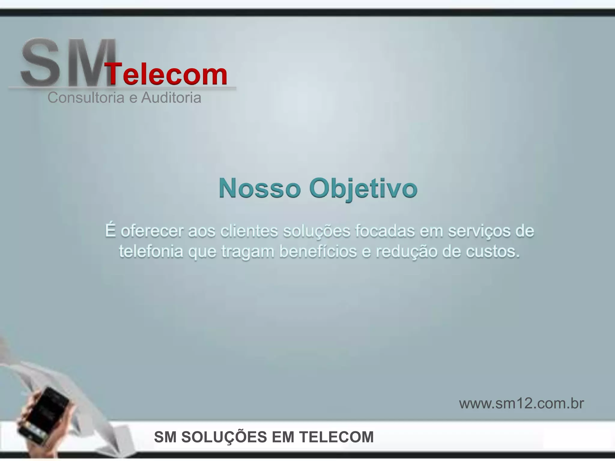 O documento promove os serviços de uma empresa de consultoria e auditoria de telecomunicações chamada SM Soluções em Telecom. A empresa oferece análise de faturas de telefonia para identificar economias potenciais, auditoria de cobranças e redução do tempo gasto na gestão de contas.