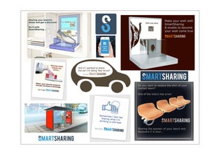 O documento descreve o SmartSharing, uma ferramenta de marketing digital que permite às marcas criarem campanhas para clientes partilharem a marca no Facebook e receberem benefícios. Detalha como funciona para marcas e clientes, exemplos de campanhas, e como fornece visibilidade de marca e envolvimento a um baixo custo.
