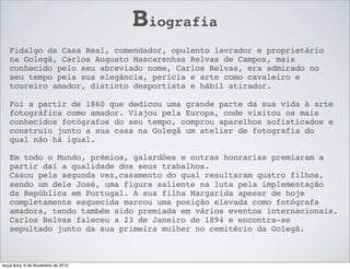 1) Carlos Relvas era um fotógrafo amador português do século XIX conhecido pela sua elegância e habilidade como cavaleiro e toureiro.