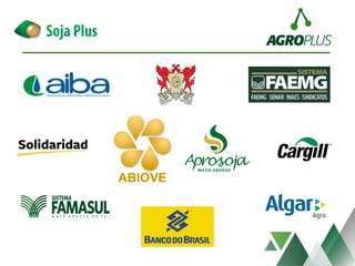 O documento descreve o Programa de Estágios Soja Plus UFV, incluindo as três fases de capacitação em três campi da UFV, cursos oferecidos, visitas técnicas realizadas em Minas Gerais, Mato Grosso do Sul e Bahia, e aplicação do programa em propriedades rurais com foco na gestão de custos.