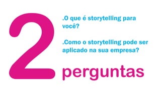 O documento explora o conceito de storytelling como uma ferramenta poderosa para engajar o público e construir marcas, enfatizando a importância de contar histórias autênticas e emocionantes. Destaca o processo de criação de narrativas que refletem a essência da experiência humana e contribui para a reputação das marcas em um ecossistema de consumo. Através de exemplos e teorias, ressalta que uma boa história pode transformar a percepção dos consumidores e inspirar ações.