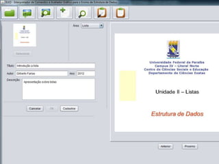 O documento discute o desenvolvimento do IGED (Interpretador Gráfico de Comandos para o Ensino de Estruturas de Dados), uma ferramenta pedagógica que visa auxiliar no ensino de algoritmos e estruturas de dados. O IGED integra componentes como um tutor em hipermídia e um gerenciador de igedlets, projetados para superar dificuldades enfrentadas por alunos e professores. A pesquisa inclui a revisão de métodos pedagógicos e apresenta resultados motivadores sobre a eficácia dessa ferramenta no aprendizado acadêmico.