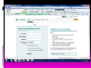 O SlideShare é uma plataforma online que permite compartilhar apresentações em formato PowerPoint ou OpenOffice. Os usuários podem criar contas gratuitas para fazer upload e classificar suas apresentações com tags, e também ver apresentações de outros usuários. O SlideShare foi criado em 2009 e se tornou uma ferramenta popular para compartilhamento de conteúdo profissional e educacional.