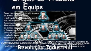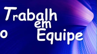 O documento discute a origem e conceitos de trabalho em equipe, destacando que envolve a colaboração de indivíduos com habilidades complementares visando metas comuns. Também apresenta vantagens como agilidade e comprometimento, além de desafios como divergências nas funções e comunicação. Realça a importância das qualidades de cada integrante e atitudes como respeito e planejamento para o sucesso da equipe.