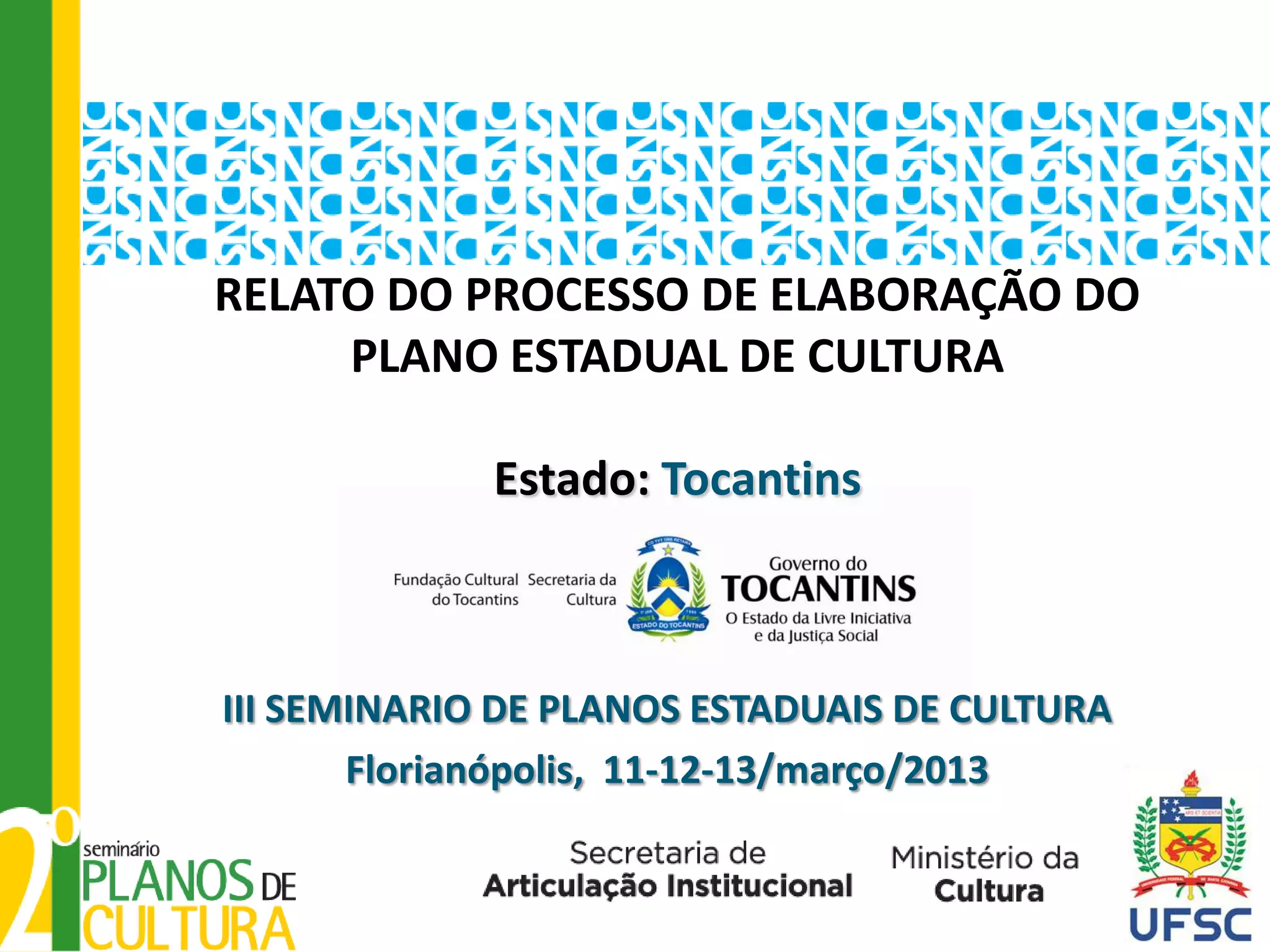 O documento resume o processo de elaboração do Plano Estadual de Cultura do Tocantins. Ele detalha as instâncias de participação que incluíram 12 fóruns regionais e um fórum regional em Palmas com centenas de participantes. Também fornece resumos quantitativos do plano com diretrizes, objetivos, desafios, oportunidades e estratégias.