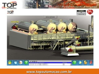 A empresa Top Automação desenvolve soluções customizadas de automação industrial, visando superar as expectativas dos clientes. Sua missão é contribuir para o crescimento do setor por meio de soluções que valorizam o trabalho humano. Suas áreas de atuação incluem programação de CLPs, softwares supervisórios e sistemas inteligentes.
