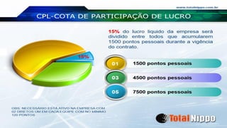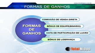 Este documento promove uma oportunidade de negócio com uma empresa de 28 anos que oferece produtos de saúde e bem-estar. Para ter direito a 30% do binário, é necessário recrutar uma pessoa para a equipe esquerda e outra para a direita após realizar um cadastro gratuito no link fornecido.
