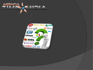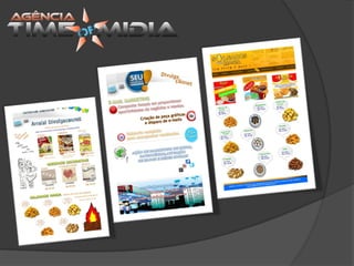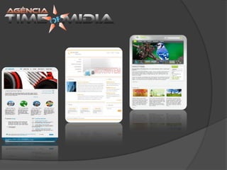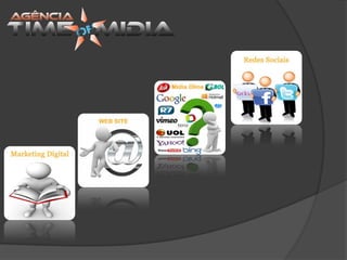 O documento discute diferentes tipos de sites e serviços de marketing digital oferecidos por uma empresa, incluindo links patrocinados, e-commerce, otimização de sites, campanhas, redes sociais, consultoria e mídia.