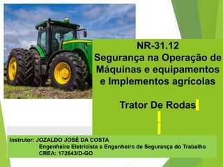 O documento discute as normas de segurança para operação de tratores e equipamentos agrícolas, destacando os riscos de acidentes e a importância do cuidado e capacitação dos operadores. As principais responsabilidades pela segurança incluem o empregador e os operadores capacitados. É essencial verificar diariamente as condições dos equipamentos e seguir procedimentos operacionais seguros.