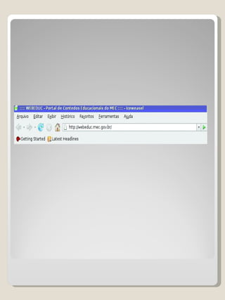 Este documento fornece instruções para um curso online sobre navegação na internet e segurança de rede. Ele explica como navegar em sites como o Portal do Professor, a Biblioteca Digital Mundial e jornais online, e como entender a estrutura de endereços web. Também fornece atividades como exercitar a compreensão da estrutura de endereços e buscar materiais para um projeto integrado de aprendizagem usando pesquisa na internet.