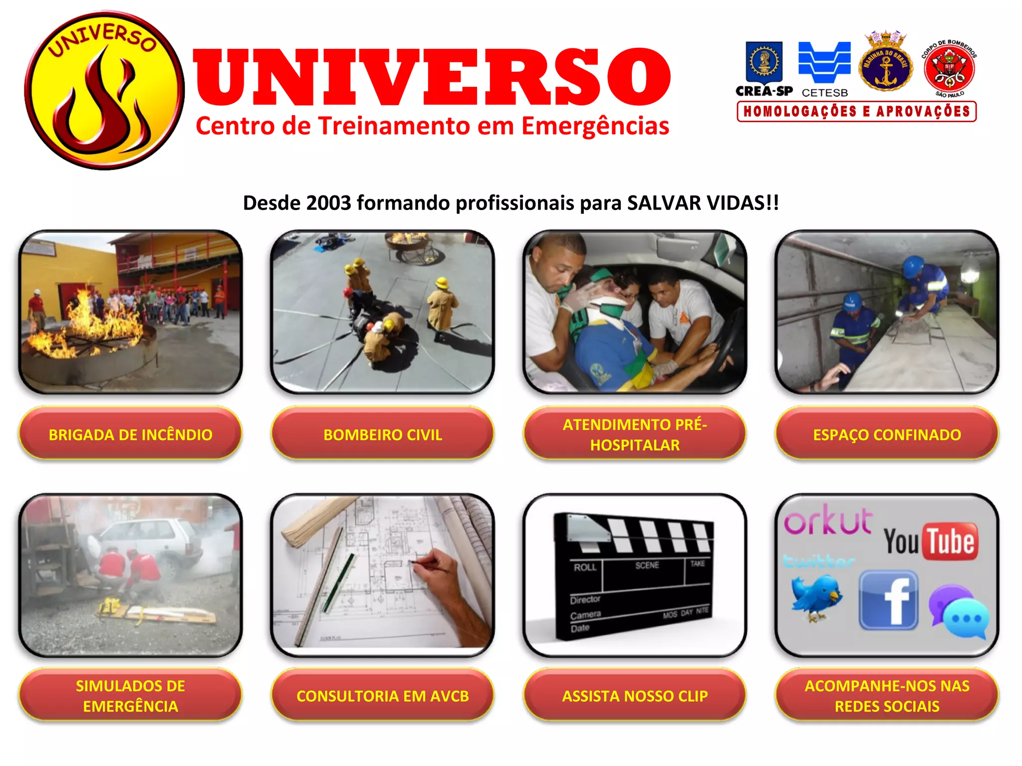 Este documento descreve os serviços de treinamento em emergências oferecidos por uma empresa, incluindo cursos de bombeiro civil, brigadista, primeiros socorros, espaços confinados e simulações de emergência. Detalha os objetivos, cargas horárias, equipamentos e instalações dos cursos, que visam formar profissionais para atuar em situações de emergência de forma segura e eficaz. A empresa também oferece consultoria para obtenção de certificados exigidos por lei.