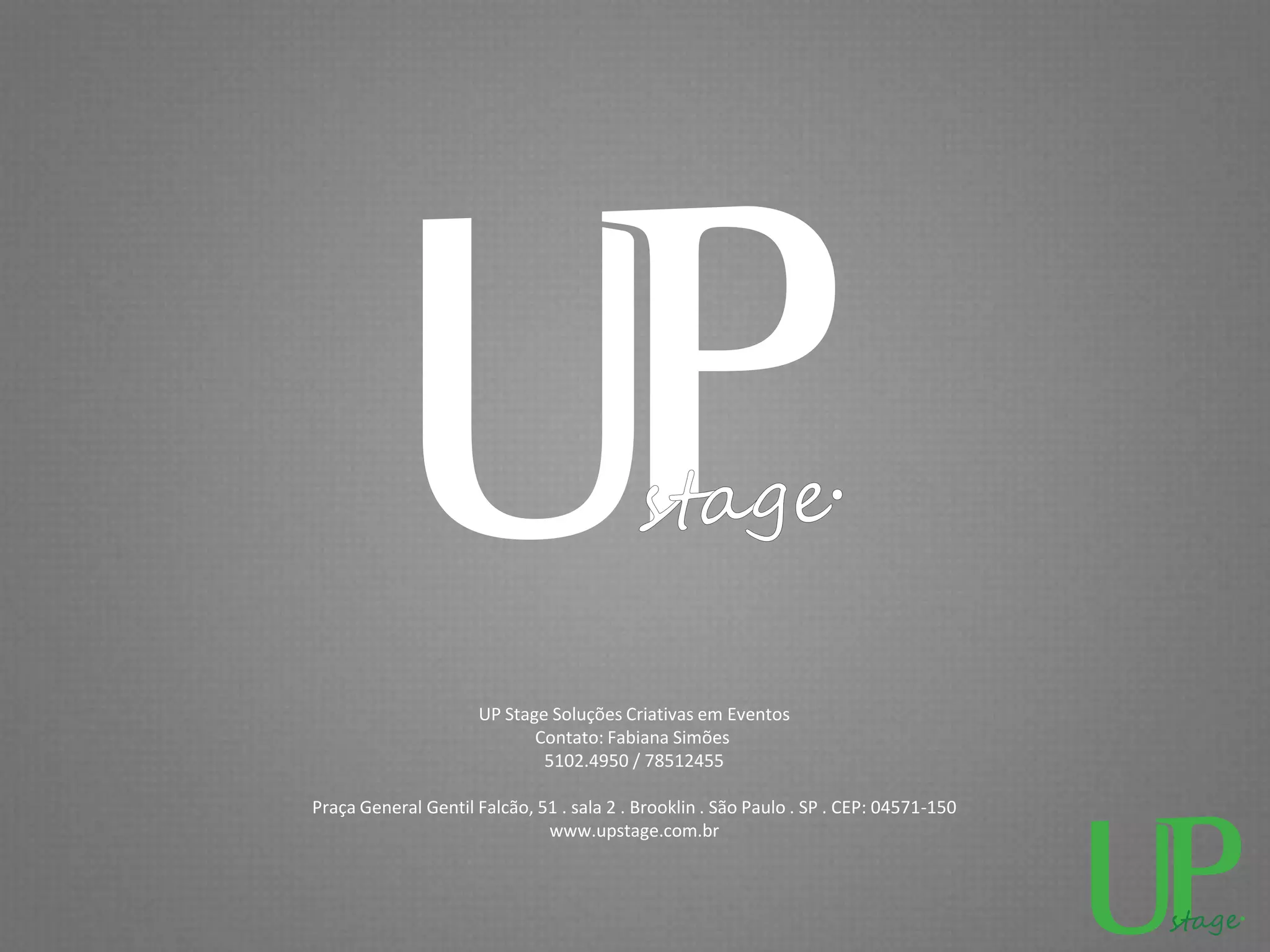 Este documento apresenta a empresa UP Stage Soluções Criativas em Eventos, fornecendo gestão integrada de eventos desde a criação da temática até o fechamento financeiro, oferecendo soluções criativas e inovadoras para convenções, congressos, feiras, treinamentos, workshops, lançamentos e festas corporativas. A empresa busca compreender as necessidades dos clientes e oferecer propostas que superem as expectativas dentro dos valores de foco no cliente, dedicação e agilidade.
