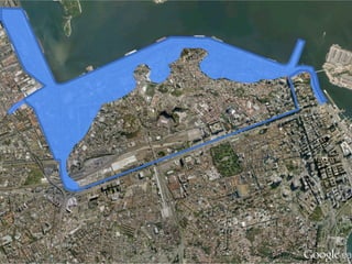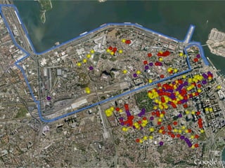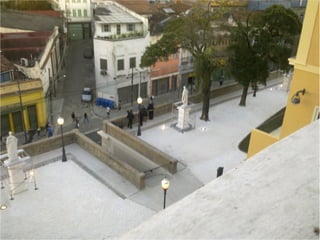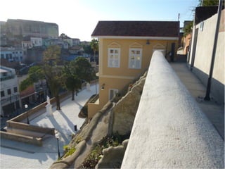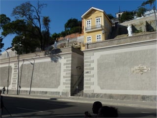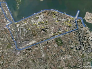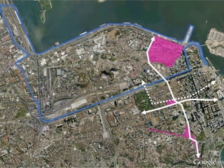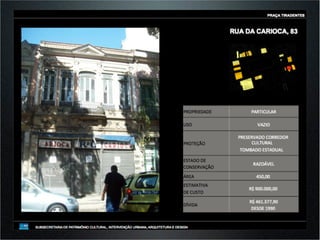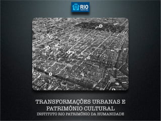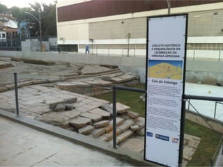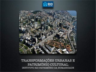 O documento discute o patrimônio cultural e as transformações urbanas na região do Porto Maravilha no Rio de Janeiro. Apresenta os antecedentes históricos da preservação do patrimônio cultural na cidade desde 1984 e descreve projetos em andamento para celebrar a herança africana, como o Circuito Histórico e Arqueológico do Valongo.
