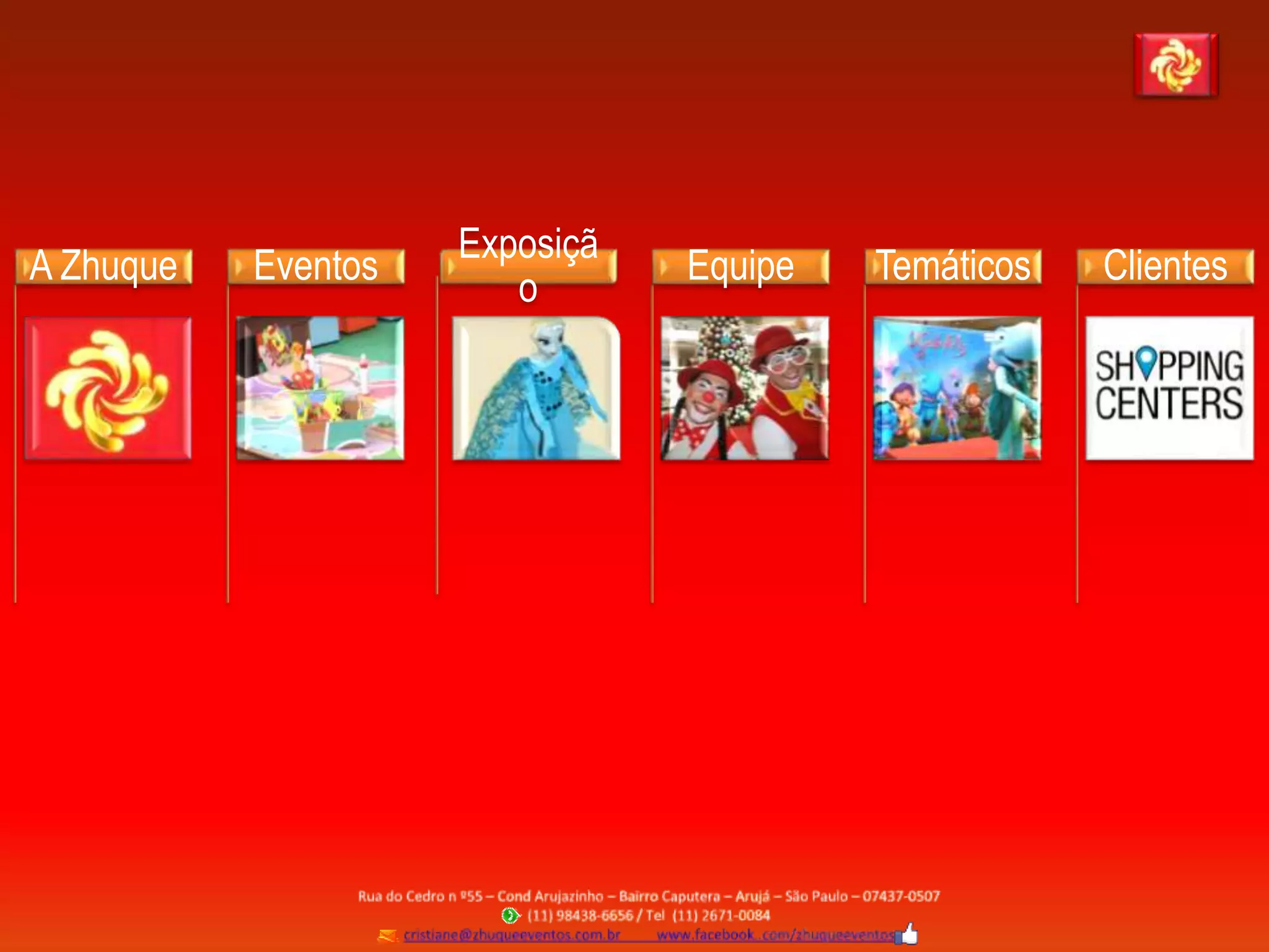 A empresa Zhuque Eventos planeja, produz e monta eventos, promoções e exposições para shopping centers e outros clientes. Eles têm uma equipe experiente e oferecem uma variedade de eventos temáticos para adultos e crianças. A Zhuque Eventos é considerada uma das maiores empresas de eventos para shopping centers no Brasil.