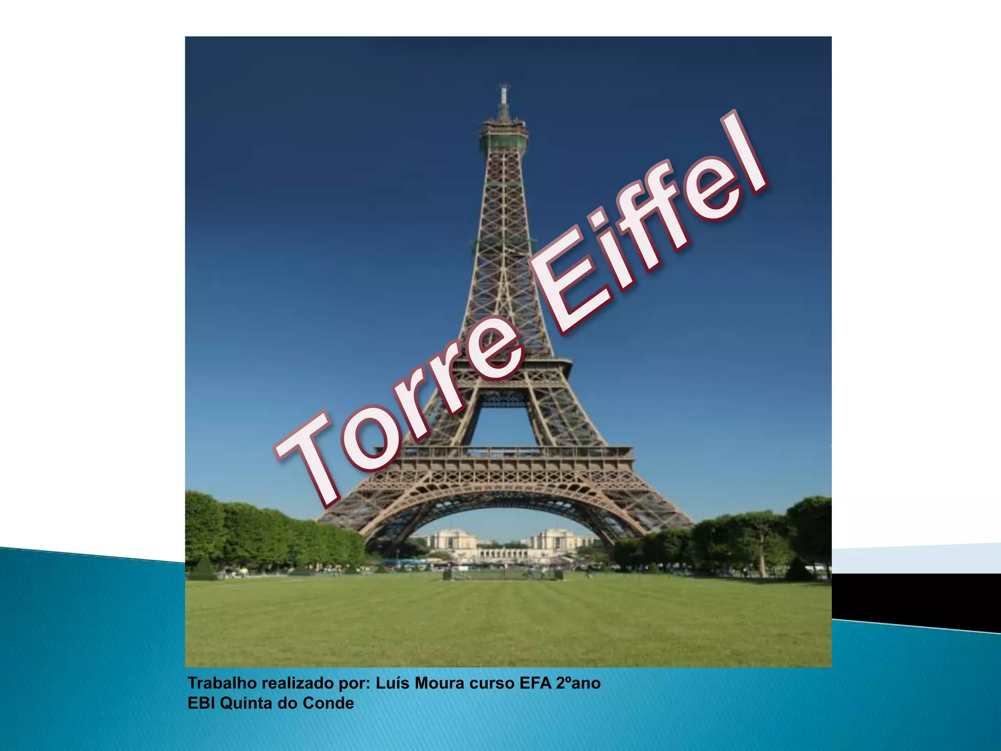 O documento descreve a história política e econômica da França entre 1848 e 1940, com foco na Revolução Industrial e no desenvolvimento da arquitetura de ferro, como a Torre Eiffel. Também fornece detalhes sobre a vida e obra do engenheiro Gustave Eiffel, projetista da famosa torre.