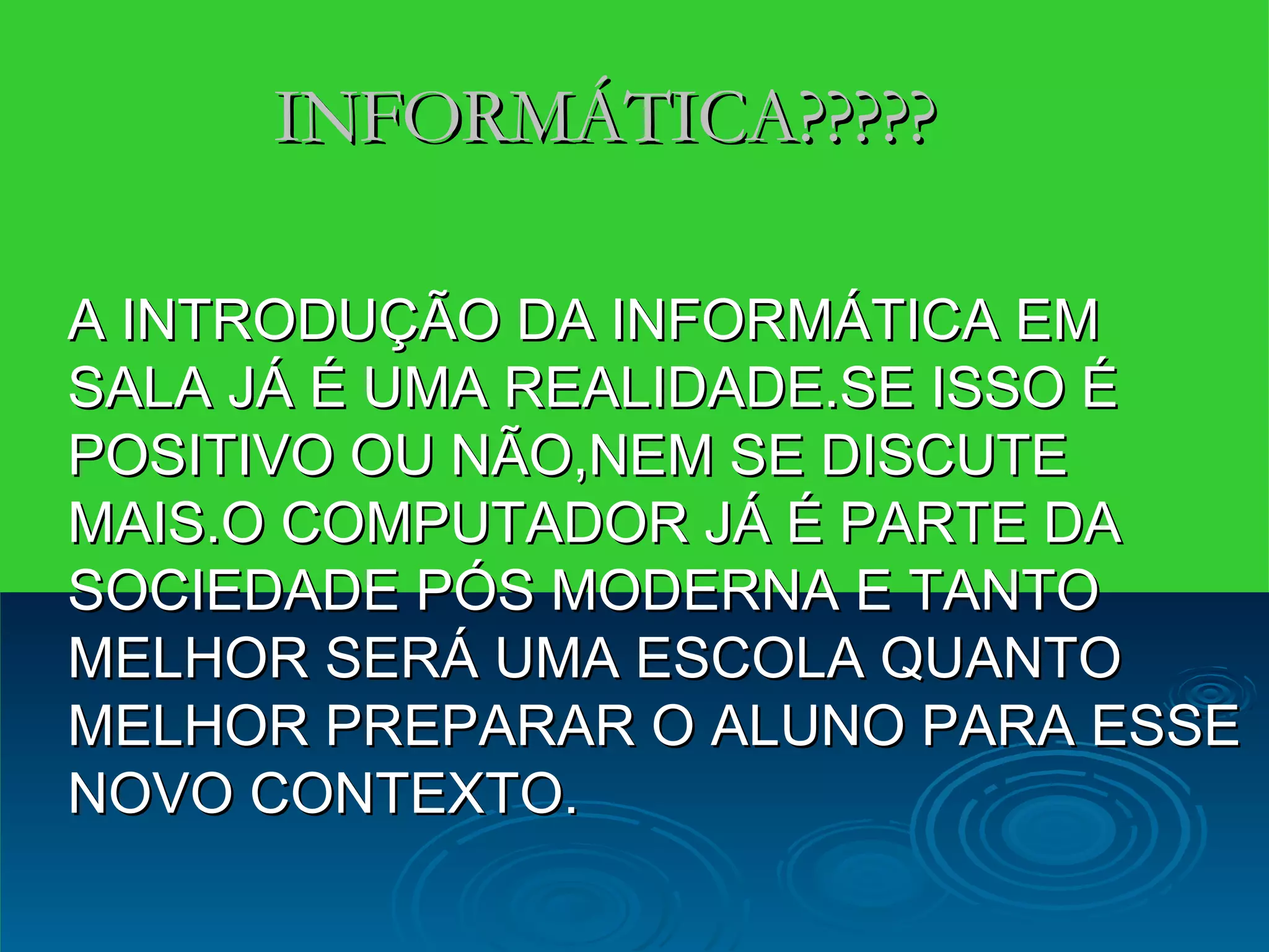 O documento discute a introdução da informática na educação. Afirma que o computador já faz parte da sociedade moderna e que as escolas devem preparar os alunos para esse contexto. Também argumenta que não aproveitar as potencialidades do computador no ensino seria como continuar a andar a cavalo em vez de usar transportes modernos.